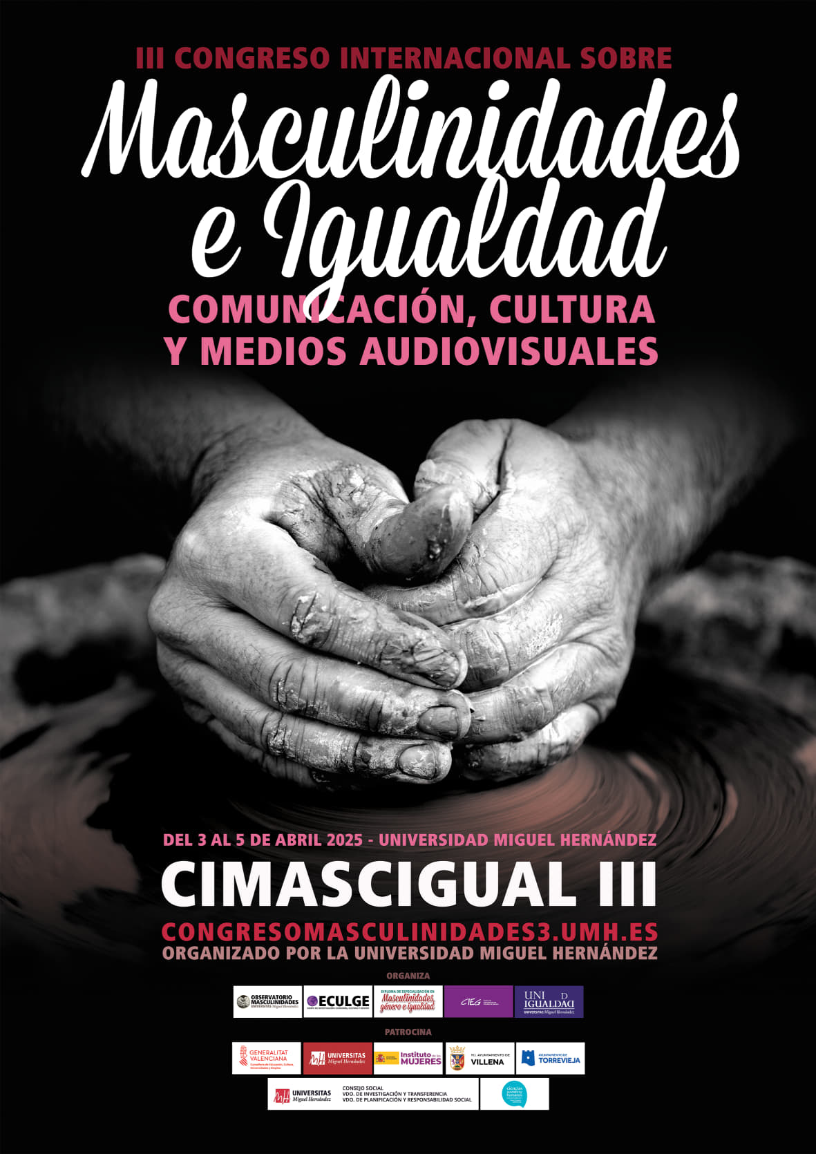 Tras la celebración de estos dos congresos internacionales, consideramos necesario dedicar esta tercera edición del CIMASCIGUAL a los productos culturales, la comunicación y los medios audiovisuales, y seguir potenciando y afianzando la creación de redes entre quienes trabajamos, investigamos, formamos e intervenimos sobre estos temas. Ambas intenciones han marcado el devenir del Observatorio de las Masculinidades UMH desde su fundación y se han venido cultivando durante todos estos años. Prueba de ello son las colaboraciones con medios de comunicación, la producción de audiovisuales, la “Red Académica Internacional Masculinidades, Género e Igualdad” o la celebración durante el año 2024 del I Ciclo de Seminarios-Workshops Feministas para la Creación de Redes sobre Masculinidades, Género e Igualdad.